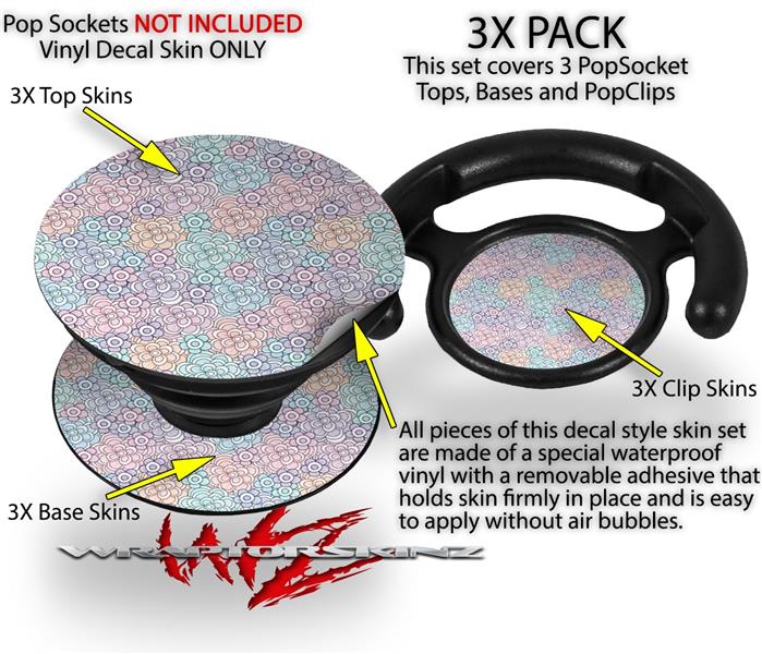 Decal Style Vinyl Skin Wrap 3 Pack for PopSockets Flowers Pattern 08 (POPSOCKET NOT INCLUDED)