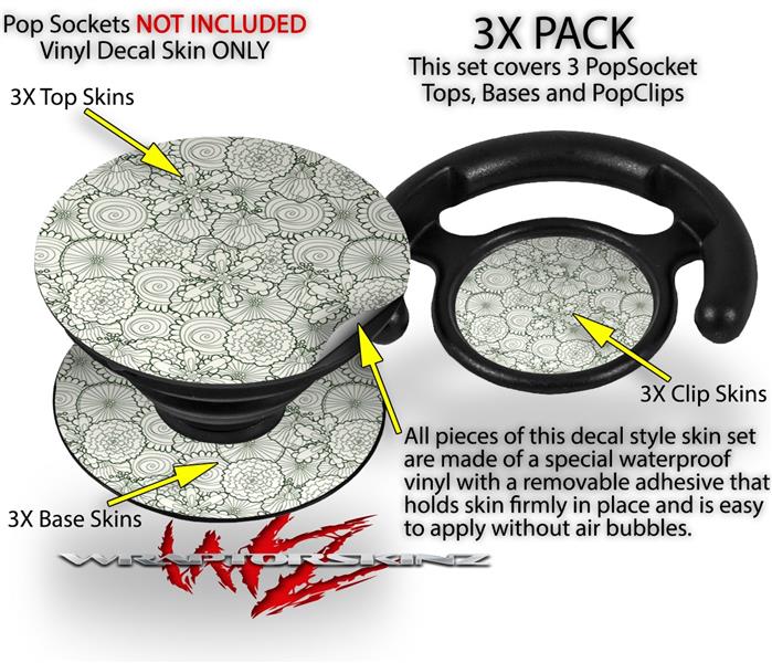 Decal Style Vinyl Skin Wrap 3 Pack for PopSockets Flowers Pattern 05 (POPSOCKET NOT INCLUDED)